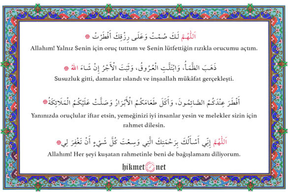 Allahım! Yalnız Senin için oruç tuttum ve Senin lütfettiğin rızıkla orucumu açtım.